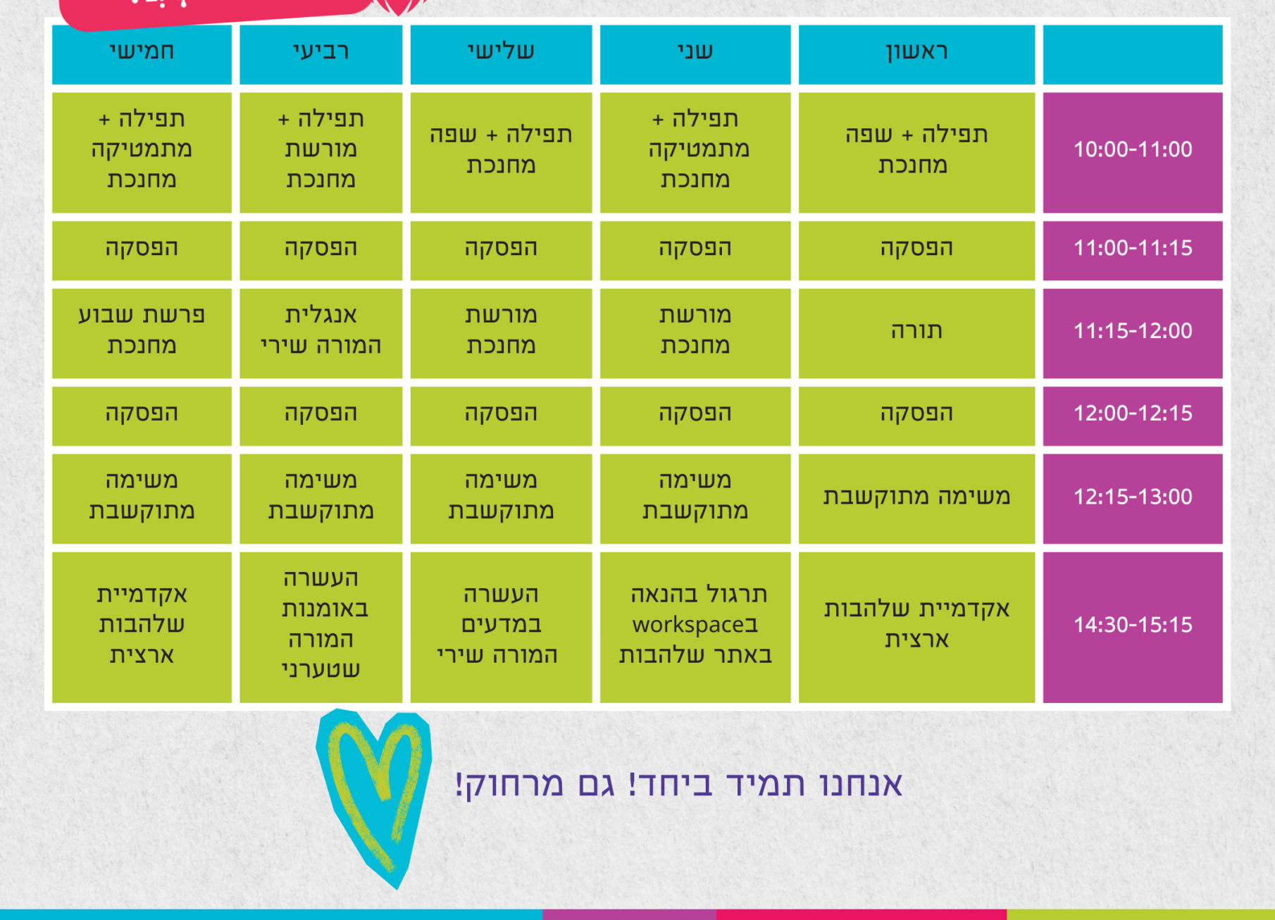 מערכת הכיתה שלנו כאן ואנחנו מחכות לראות אתכם במפגשים המיוחדים!